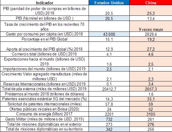 Tabla 1: Algunos indicadores comparativos entre Estados Unidos y China