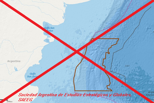 Respecto a la delimitación del Área Marina Protegida, comienzo por decir, que establecer un AMP en el Agujero Azul, en el hipotético y absolutamente improbable escenario que fuese una acción efectiva para la Argentina, será especialmente beneficiosa para el Reino Unido asegurándole la disponibilidad de los recursos para el otorgamiento de licencias ilegales de pesca y las mejores condiciones para el reconocimiento del Reino Unido como Estado ribereño en el Atlántico Sudoccidental. Los límites que le asigna el proyecto al AMP son al norte el paralelo 42º 32´S, al sur el paralelo 47º 30´S, al este el límite externo de la Z.E.E. Argentina y al oeste por la isobata de 5.000 metros, y esta limitación es absolutamente imperfecta ya que gran parte de la presentación (más de 1,4 millones de km2) de la plataforma continental argentina no ha sido tratada ni recomendada por la Comisión de Límites que opera en la ONU, por tratarse —entiende esta Comisión— de un territorio en disputa con el Reino Unido, razón por la cual, toda pretensión será inoponible a terceros, pero y, muy especialmente, como ya he dicho, podría dar lugar a acciones británicas de impredecibles consecuencias para la Soberanía Nacional.
