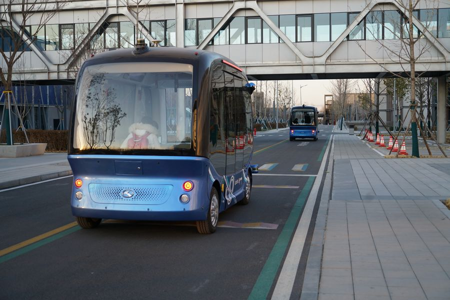 Vehículos autónomos prestan servicios de transporte público en la Nueva Área de Xiongan, en la provincia septentrional china de Hebei, el 7 de diciembre de 2018. (Xinhua/Mu Yu)