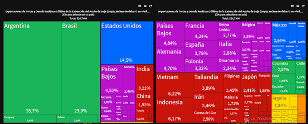 Forraje: los pellets y tortas de soja. El principal proveedor es Argentina seguido por Brasil y EEUU. Además importan granos de soja que transforman en aceite y forraje en España y en Rotterdam (Holanda) y de ahí reubican intra UE. Países diminutos como Dinamarca u Holanda producen más leche, carne o queso que nosotros y exportan miles de millones de euros.