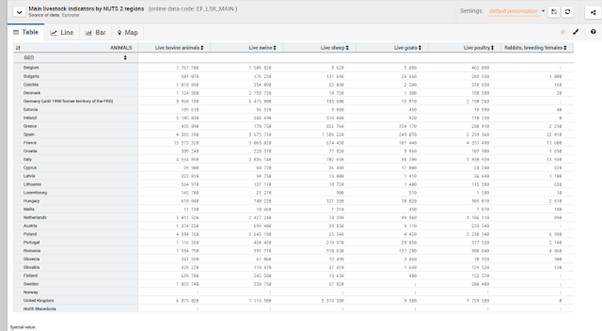 Rodeos animales de la Unión Europea 2016: bovinos 79.697.540, porcinos 142.649.780, cabras 12.709.000, ovejas 63.286.000.