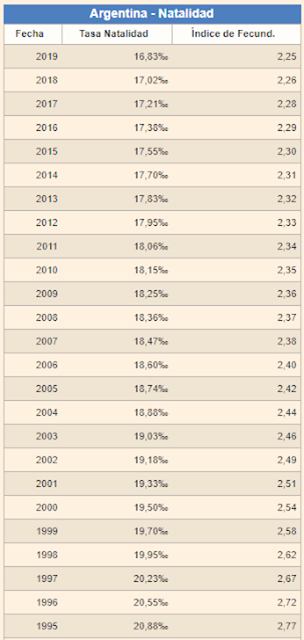 Tampoco es cierto que cuánto más desarrollado un país, más cae la tasa de natalidad. Por el contrario, durante todo el siglo XXI Argentina fue víctima de un plan de desindustrialización y traslado de la actividad económica a Brasil. Esto es, se des-desarrolló, y no se verifica un aumento de la tasa de natalidad.