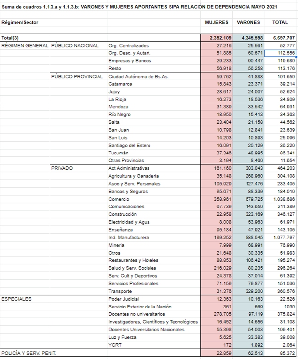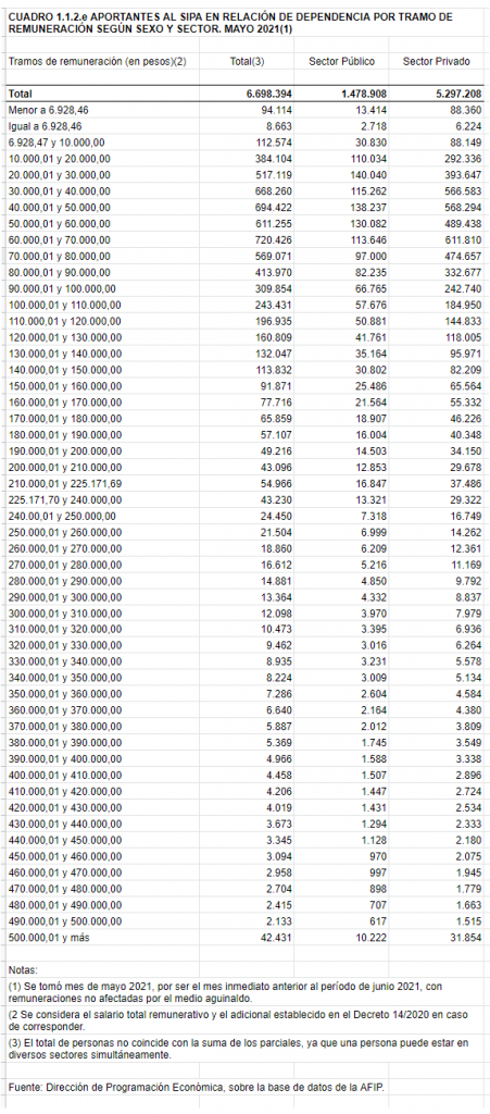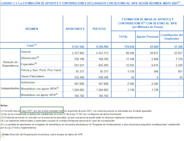Vemos que hay más de nueve millones de aportantes a mayo 2021. Hay menos puestos que aportantes porque algunas personas tienen dos o más trabajos.
