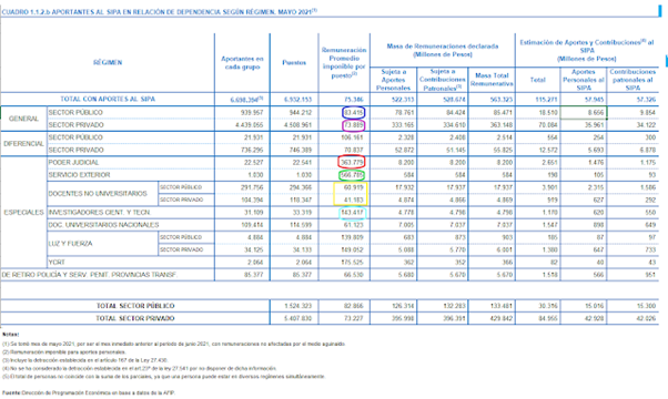 - Los empleados públicos ganan en promedio más que los privados (redondeles azul y fucsia). Esto es una novedad en la historia argentina. Es un ciclo que comenzó Cristina Fernández. El PRO es uno de los fervorosos seguidores de este principio; ha llenado la ciudad de “directores/gerentes/etc.” que ganan montos que jamás lograrían en el sector privado.
