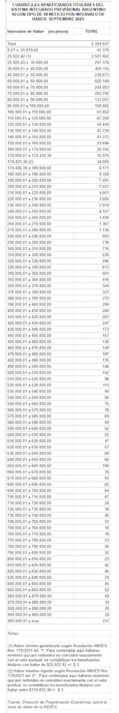 - El máximo por ley a septiembre 2021 era de ciento setenta y cuatro mil pesos. Entre cero y ese valor está el 94% del pago a beneficiarios.