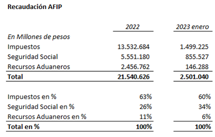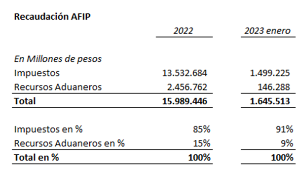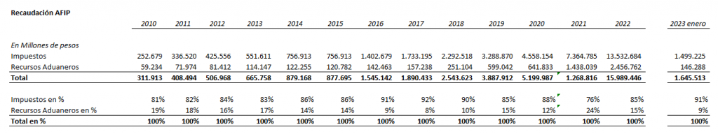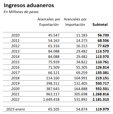 Desde 2010 a enero 2023, los ingresos aduaneros oscilaron entre un mínimo de 9% a un máximo de 19%.