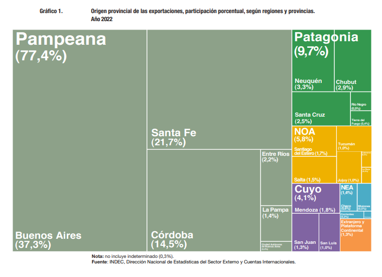 El 99,6% de esas exportaciones provienen del interior del país y el 0,4% de la capital federal.