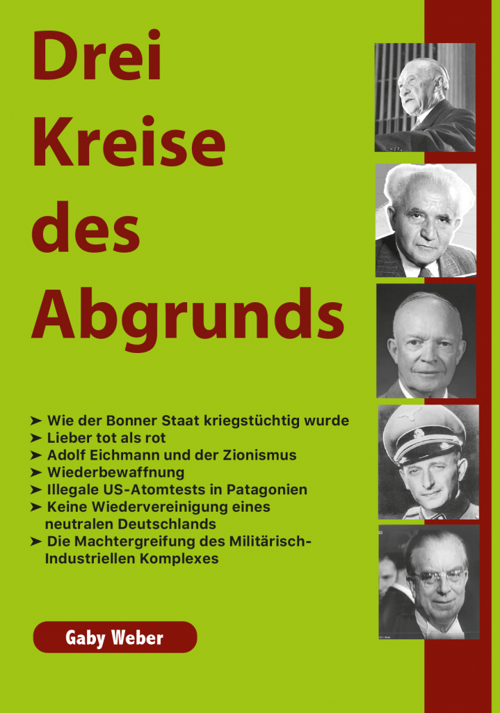 Cabe aquí formularse una pregunta: ¿Esto se debió a presión política? Es bastante probable que así fuera dado que para Weber el relato oficial de los acontecimientos de mayo de 1960 no fueron otra cosa que una falsificación histórica. Su investigación viola los intereses de varias potencias: Israel se ha enamorado verdaderamente en su fake news sobre el «heroico secuestro de un nazi»; Estados Unidos ocultó sus experimentos nucleares al mismo tiempo en la Patagonia, las que podría considerarse una provocación para la cumbre de desarme en París y que tuvieron un impacto devastador; por su parte, la Unión Soviética había subestimado el complejo militar-industrial y fue chantajeada; Konrad Adenauer logró impedir la reunificación y la neutralidad de Alemania; y los argentinos tenían buena voluntad, pero al final fueron engañados.