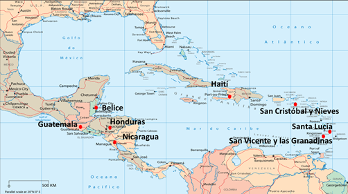 Imagen 1: Países del Gran Caribe con relaciones diplomáticas con la provincia china de Taiwán. Fuente: Elaboración de autor.