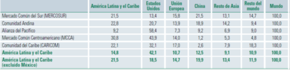 Imagen 3: Estructura de las exportaciones de los diversos mecanismos con los principales socios. Fuente: (CEPAL, 2020, p.97).