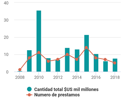 Imagen 5: Préstamos total de China a América Latina y el Caribe 2008-2018 en mil millones de dólares. Fuente: (Soutar, 2019)