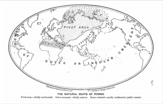 Al alcanzar este punto de nuestro ensayo, deseamos recomendar a nuestros lectores repasar el ensayo “La Actualidad de ‘La Tesis’ sobre el Océano Político”. Abreviaríamos así la necesidad de desarrollar aquí —nuevamente— la Doctrina McKinder y en particular su Corolario Spykman. Ambas dieron lugar al mapa precedente.
