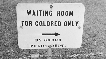 Un cartel que advierte: «Sala de espera solo para gente de color -> por orden del departamento de policía». Foto: Getty Images.