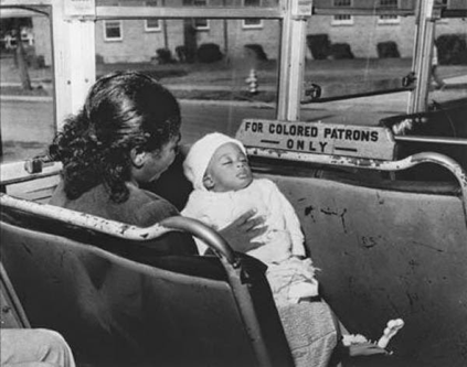 El 1º de diciembre de 1955, en Montgomery, Rosa Parks —secretaria de la Asociación Nacional para el Avance de la Gente de Color (NAACP, por sus siglas en inglés)— retornaba de su trabajo como costurera en unos grandes almacenes y tomó asiento en la parte de atrás del ómnibus, área permitida para los ciudadanos de color: afrodescendientes, indígenas, orientales. En un momento en que el transporte estaba lleno y había gente blanca de pie, el conductor detuvo el ómnibus para pedirles a tres mujeres negras que se levantaran pero Rosa Parks se negó y no lo hizo ni cuando el conductor amenazó con denunciarla. Rosa Parks fue arrestada, enjuiciada y condenada por transgredir el ordenamiento municipal. Este es uno de los casos emblemáticos de discriminación, a los que se puede añadir numerosos más que incluyen las acciones del Ku Klux Klan hasta condenas a muerte de adolescentes y ciudadanos negros que fueron presionados para confesar delitos que no cometieron.