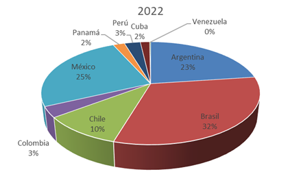 Gráfico 1: Relevancia de los principales socios comerciales de Vietnam en América Latina y el Caribe en el 2022 en %.