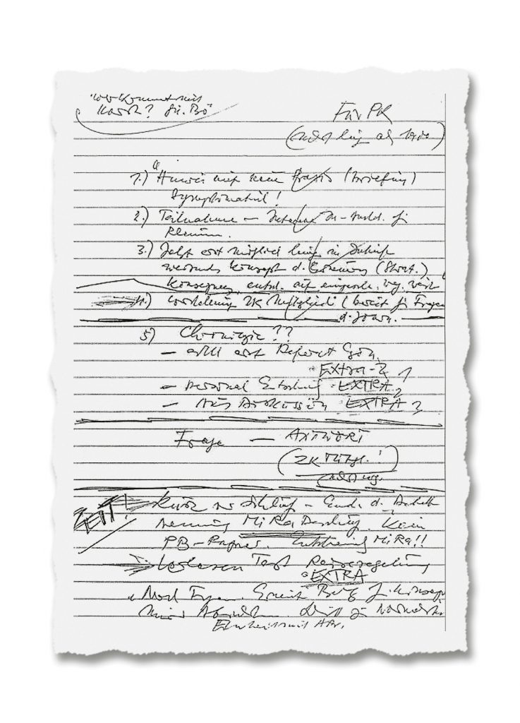 Schabowski escribió un memorando para la conferencia de prensa. Al final de la misma es: “Leer el texto del reglamento de viaje”. Foto: Archivo Berliner Zeitung[14]