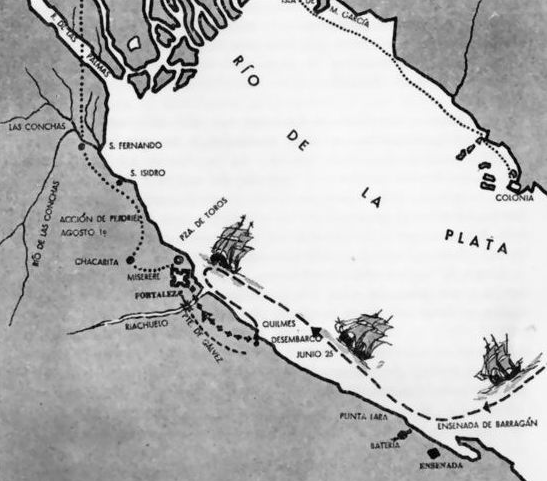 El 8 de junio de 1806 la flota se apareció en el Río de la Plata y luego dejar de lado Montevideo se lanzó hacia Buenos Aires y el 25 de junio las tropas al mando del brigadier general William Carr Beresford desembarcaron en Quilmes.