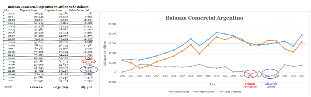 Como verán del 2000 al 2021 el excedente de balanza comercial fue de US$ 183.482 millones de dólares. Sí, más de la mitad de la deuda externa. Si hay algo que sobra en Argentina, son dólares. No hay razón alguna para que exista deuda externa ni deberle dinero al FMI, ni al Club de París ni a nadie.