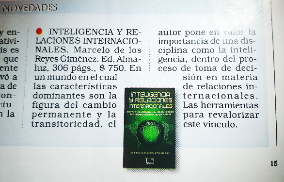 [20] Sobre el espionaje global, ver: Marcelo Javier de los Reyes Giménez: Inteligencia y Relaciones Internacionales. Un vínculo antiguo y su revalorización actual para la toma de decisiones. Buenos Aires: Editorial Almaluz, 2019, 310 p.