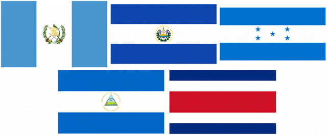 De izquierda a derecha y de arriba a abajo:Banderas de Guatemala, El Salvador, Honduras, Nicaragua y Costa Rica.