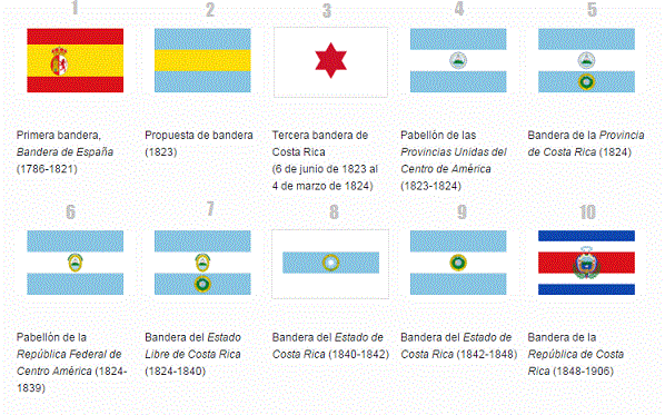 Evolución de la bandera de Costa Rica a lo largo de su historia