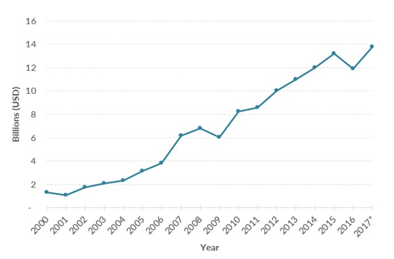 Anexo 5. Flujos de remesas anuales a Vietnam, 2000–17.
