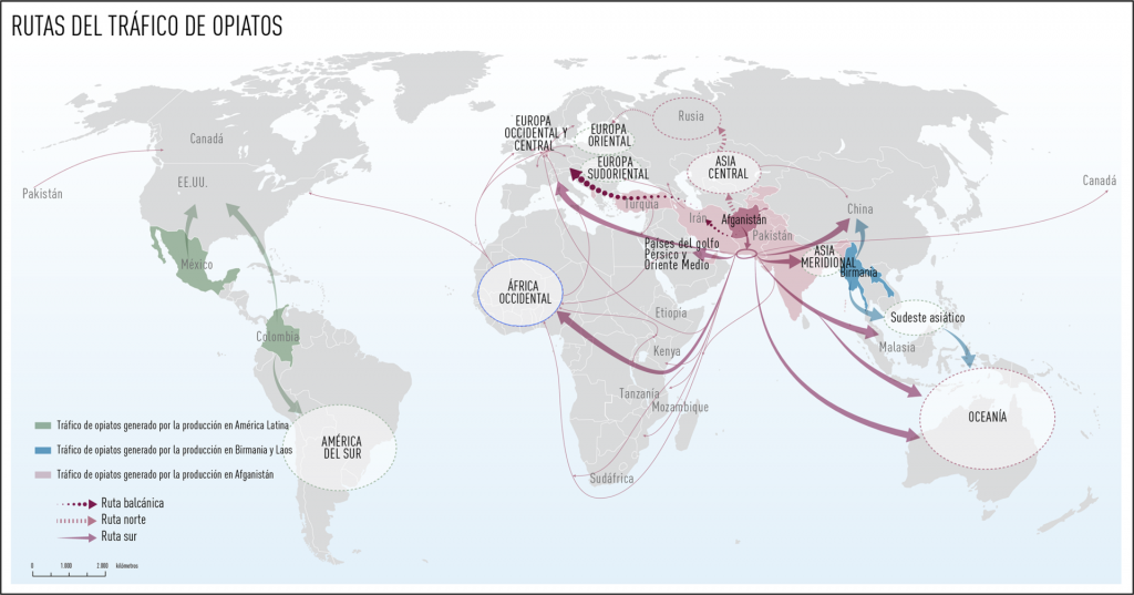 Según el Observatorio Europeo el 85% de la heroína se produce en Afganistán. No explican cómo, luego de 20 años de ocupación del país por parte de norteamericanos y europeos, la producción aumentó y la mayoría terminó en ambos mercados. Misterio. El tráfico a Europa se da mayormente a través de los Balcanes.