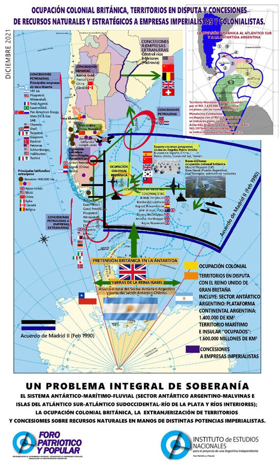 En la década de 2010, el Reino Unido inició exploraciones petroleras en Malvinas en 2010. Este año, por Decreto del PEN 256 se obligó a los buques desde y hacia Malvinas, solicitar permiso de tránsito a las autoridades nacionales, medida apoyada por los países suramericanos, pese a lo cual, cientos de buques extranjeros reparan, arman y transbordan en puertos uruguayos y en alta mar. El Reino Unido creó la «reserva Blue Belt más grande del mundo» con 1.070.000 km2 (tres veces más grande que el Reino Unido) en jurisdicción argentina (alrededor de Georgias del Sur y Sándwich del Sur), para asegurarse la llegada de peces al área de Malvinas, incluidos 20 mil Km2 de exclusión, en contra de las prescripciones del CAMELAR (Convención para la Conservación de los Recursos Vivos Marinos Antárticos). En el año 2013, por Ley 26.875, el gobierno creó el Área Marítima Protegida “Namuncurá” que, en todo caso, debió limitarse a que el Consejo Federal Pesquero dicte normas de regulación y evitar que esos recursos migren a Malvinas. En 2015 el Reino Unido anunció el hallazgo de petróleo en la Cuenca Norte y luego, otorgó permisos de exploración. En 2016/17 la Comisión de Límites (CLPC) aprobó el informe argentino, por el cual, recomienda que sobre el total de 1.782.000 km2 presentados, queden firmes 351.633 km2 «dejando en suspenso el resto de km2 por tratarse de espacios en disputa con el RU». En el mismo año, se ratificó de hecho el Acuerdo de Madrid, con el denominado Pacto Foradori-Duncan que declara: «adoptar las medidas para remover los obstáculos que limitan el crecimiento económico y el desarrollo sustentable de las Islas Malvinas». Este pacto reactivó las investigaciones pesqueras conjuntas con el Reino Unido en el Atlántico Sur que habían sido suspendidas en 2015 y habilitó un vuelo de Malvinas a San Pablo, facilitando el comercio con este importante centro económico y una vía de acceso al mundo y, con ello, la sobrevivencia de las islas post-Brexit. En este año, la Canciller Malcorra manifestó (en medio de su campaña por hacerse de la secretaría general de la ONU), que “las islas Malvinas no son más el tema principal en la relación entre Buenos Aires y Londres”. En 2018 durante la Cumbre del G20 se firmaron qcuerdos pesqueros con China y Rusia ratificando la política de extranjerización del Atlántico Sur. En 2019 se licitó y aprobó a favor de empresas británicas, áreas offshore de explotación petrolera en una zona entre Malvinas y el continente argentino, consolidando la presencia británica en esa región austral
