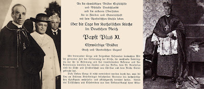 En este contexto, considero oportuno recordar el compromiso asumido ante la sociedad alemana cuando el papa Pío XI dio a conocer su encíclica Mit brennender Sorge, en la cual examinaba la situación de la Iglesia en el Reich alemán y condenaba el totalitarismo y el racismo establecido por el régimen nazi. El documento fue encargado por el Pontífice y su cardenal secretario de Estado Eugenio Pacelli al cardenal Michael von Faulhaber, arzobispo de Munich, quien tenía un gran conocimiento de lo que estaba sucediendo en su país y era un decidido opositor de Hitler. Fue el producto de un trabajo de redacción conjunto realizado por los cardenales Pacelli y von Faulhaber. Cabe destacar que todas las encíclicas llevan su nombre en latín derivado de las primeras palabras del documento pero, en este caso, fue originalmente dada en alemán con la clara intención de que pudiera ser leída, en primer lugar, por las autoridades del Tercer Reich y, en segundo lugar, por el pueblo alemán, en especial los de fe católica. Las copias mimeografiadas fueron enviadas y difundidas por la nunciatura de Berlín burlando la censura nazi. Desde los púlpitos de las iglesias alemanas la encíclica Mit brennender Sorge fue leída el domingo de Ramos —el día 21 de marzo de 1937— provocando una profunda ira en el gobierno y en el partido nacionalsocialista. Fue una respuesta de la Santa Sede a la supresión de las escuelas confesionales y el consiguiente monopolio estatal de la enseñanza orientada en sentido racista; el control arbitrario de la prensa católica y la supresión de toda libertad de expresión y de réplica. Muchos sacerdotes fueron sometidos a procesos y enviados a campos de concentración.