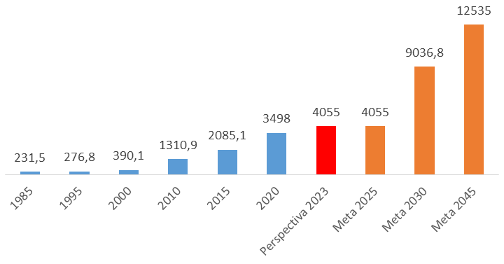 En su estrategia hacia el futuro más cercano el Partido aspira a que Vietnam se convierta en un país de ingreso mediano y bajo (5080,9 dólares) para el 2025. En los momentos actuales es un país que sobrepasa el estándar de ingreso medio bajo (2174,4 dólares) con valores en el 2019 de 2715,3 dólares y se prevé que para el 2023 arribe a la meta prevista por el evento para el 2025 (ver gráfico 1). En ese sentido Vietnam tiene que seguir transformando su modelo de crecimiento hacia uno de mayor desarrollo en el que eleve el nivel de competitividad de la economía nacional. Tras el impacto de la Covid-19, Vietnam fue el único país del Sudeste Asiático que aumentó su PIB per cápita más de 80 dólares en 2020.
